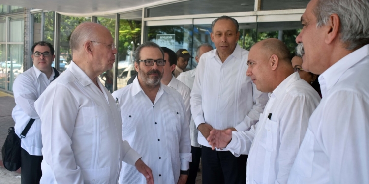 Durante una inédita visita de trabajo conjunta de dos días -15 y 16 de junio- a Cuba, participan los secretarios de Salud, José Narro, y de Economía, Ildefonso Guajardo, así como los directores generales de los institutos Mexicano del Seguro Social, Mikel Arriola, y de Seguridad y Servicios Sociales de los Trabajadores del Estado, José Reyes Baeza, así como el embajador de México en Cuba, Enrique Martínez y Martínez.