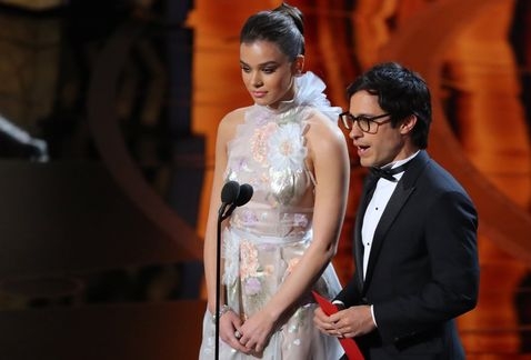 El mexicano apareció en el Teatro Dolby junto a la actriz Hailee Steinfeld y presentó el premio de mejor corto animado.