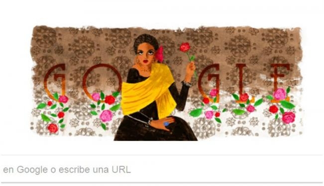 En su Doodle, el buscador muestra a Katy Jurado con un vestido negro, rodeada con una chalina amarilla y un moño rojo en el cabello, rodeada de rosas de colores, mientras que en el fondo se encuentra un elegante papel tapiz.