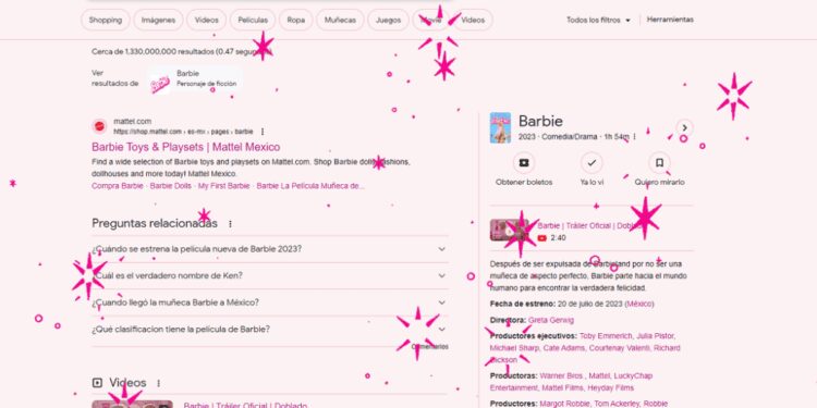 Si buscas términos relacionados con la película en Google, como «Barbie», «Greta Gerwig», «Margot Robbie» o «Ryan Gosling», algo mágico sucederá.