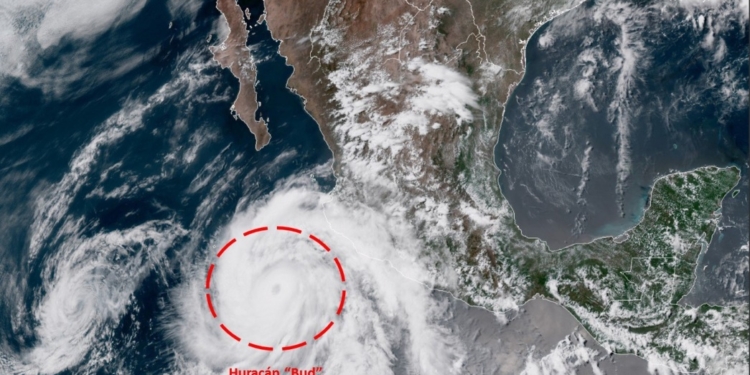 Con base a la información del Servicio Meteorológico Nacional, se da a conocer que el Huracán Bud en su avance lento en dirección noroeste alcanzó en la madrugada de hoy categoría 4; sin embargo, se empieza a debilitar gradualmente. La última actualización de las 10:15 horas, el Huracán Bud ahora como categoría 3, se desplaza hacia el  Noroeste (320°) a 9 km/h y se localiza  aproximadamente a 360 km al suroeste de Cabo Corrientes, Jal., y a 270 km al este de Isla Socorro, Col., presenta vientos máximos sostenidos de 205 km/h – Rachas: 250 km/h.