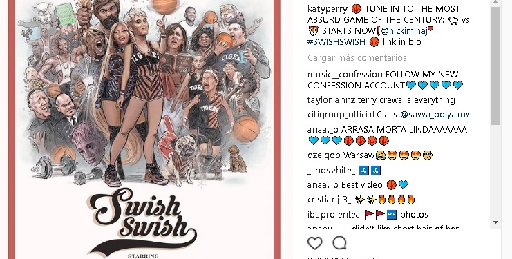 CIUDAD DE MÉXICO, 24 de agosto (AlMomentoMX).- Katy Perry lanzó el videoclip de “Swish Swish”, el tercer sencillo de su quinto disco, Witness, en el que le acompaña Nicki Minaj y dos equipos con caras conocidas del cine y la televisión enfrentándose en un emocionante partido de baloncesto.