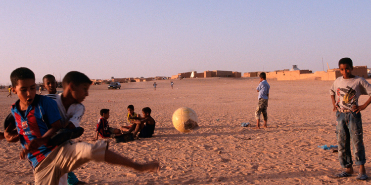 Niños en Argel jugando fútbol como lo hacía Camus.