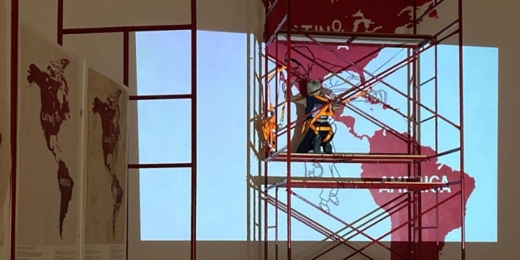 Las artistas urbanas mexicanas Hokzyn, Diana Zyan y Tysa crearán un nuevo mapa de Latinoamérica. La primera en intervenir la obra LATINO/A AMÉRICA es la pintora Hokzyn, quien dentro de su proceso creativo se inspiró en temas como migración, traslado y traspaso, tópicos que también maneja Pedro Lasch, indicó la artista.