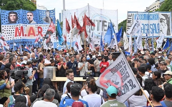 Redacción MX Político.- La Confederación General del Trabajo (CGT), la principal central sindical de Argentina, convocó este jueves una huelga general en protesta por las amplias reformas impulsadas por el Gobierno de Javier Milei. «El día 24 vamos a hacer un paro con movilización al Congreso para apoyar a aquellos diputados y senadores que nos planteen que esto no puede pasar en Argentina», dijo su secretario general, Héctor Daer.