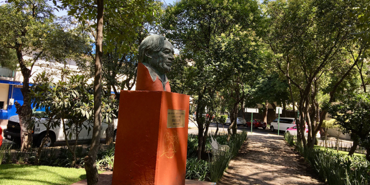 La placita en Tlalpan con el busto de Renato Leduc.