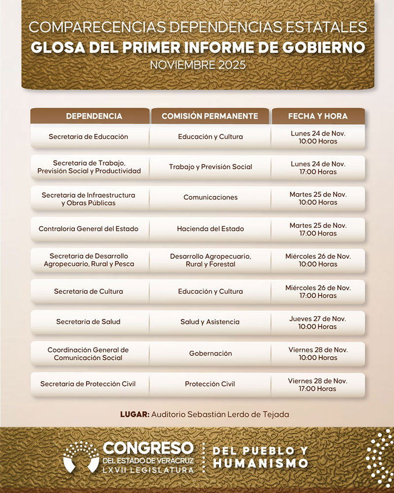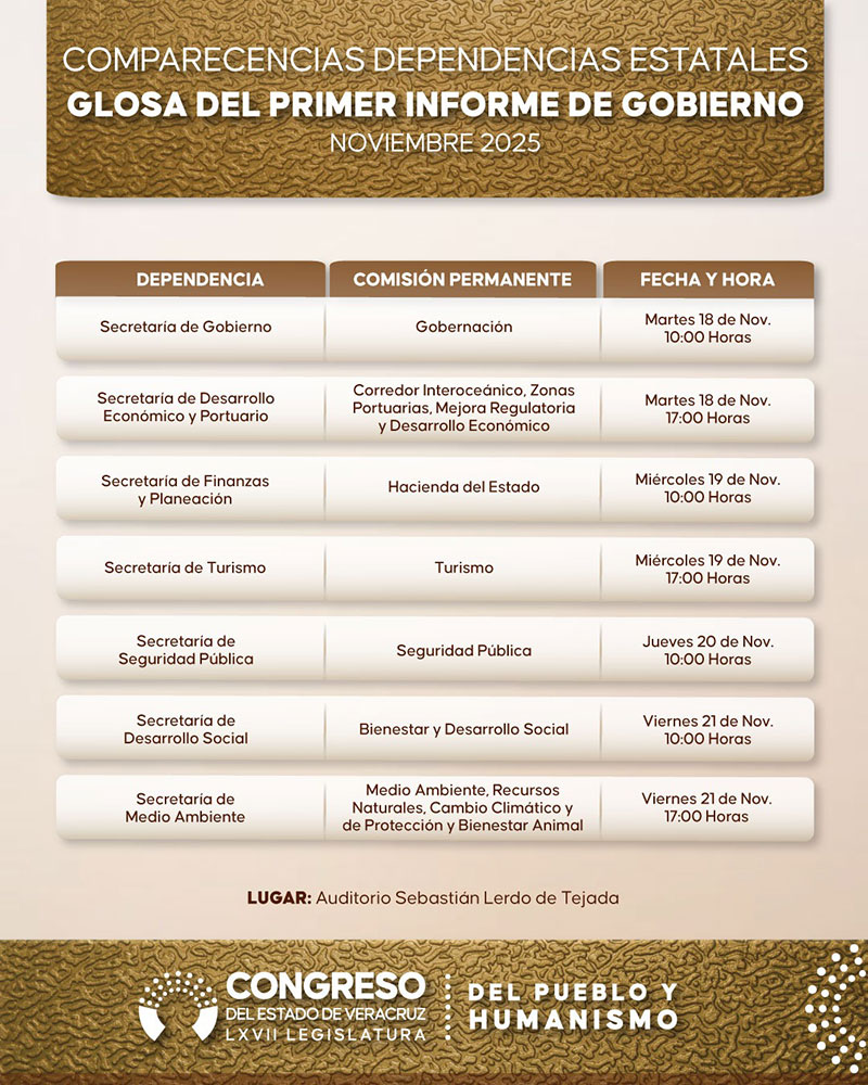 Por mayoría de votos, el Congreso de Veracruz aprobó modificar el Artículo 154 del Reglamento para el Gobierno Interior del Poder Legislativo, estableciendo un nuevo formato para las comparecencias de los titulares del Ejecutivo estatal y su gabinete, con motivo de la glosa del Primer Informe de Labores de la gobernadora Rocío Nahle García. La justificación oficial: “agilizar tiempos”, “reducir recursos” y “circunscribir los temas al ámbito de competencia” de cada funcionario.