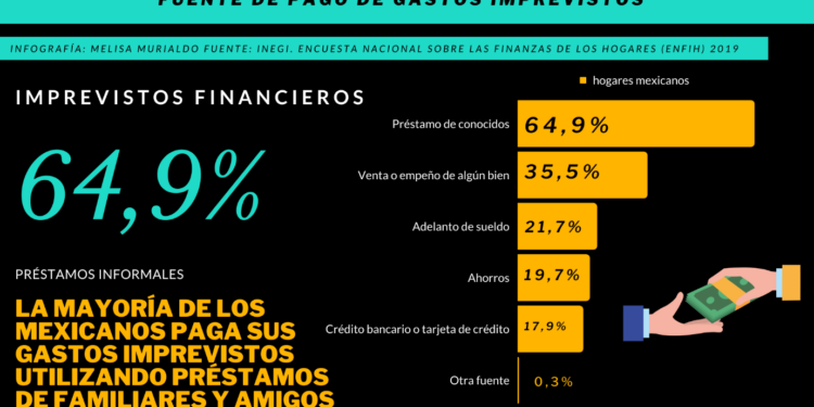 La mayoría de los mexicanos (64,9%) paga sus gastos imprevistos utilizando préstamos de familiares y amigos, el resto: