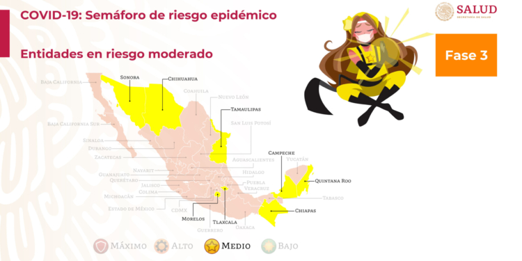 MÉXICO.- La Secretaría de Salud del Gobierno Federal anunció que 16 entidades de México se mantendrán en semáforo amarillo de este 28 de septiembre y hasta el 11 de octubre; lo que significa riesgo moderado en los contagios de coronavirus.