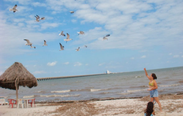 Las olas del mar Caribe, suaves, casi silenciosas rompían, espumosas, cerca de la arena. La palapa con sus sillas y mesa esperaba la llegada de la tarde cuando el sol bajara y los amigos se reunieran a disfrutar de una cerveza fría. La parvada de gaviotas se disputaba los trozos de pan que enviaba al cielo una mujer cuya risa contagiosa se escuchaba hasta donde yo estaba.