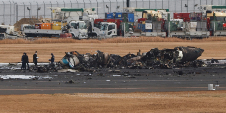 El miércoles, seis expertos de la Junta de Seguridad del Transporte de Japón examinaron lo que quedaba del avión, dijo la junta. Imágenes de televisión mostraron las alas del A350 gravemente dañadas entre las partes carbonizadas y rotas del fuselaje. El avión más pequeño de la guardia costera parecía un montón de escombros.