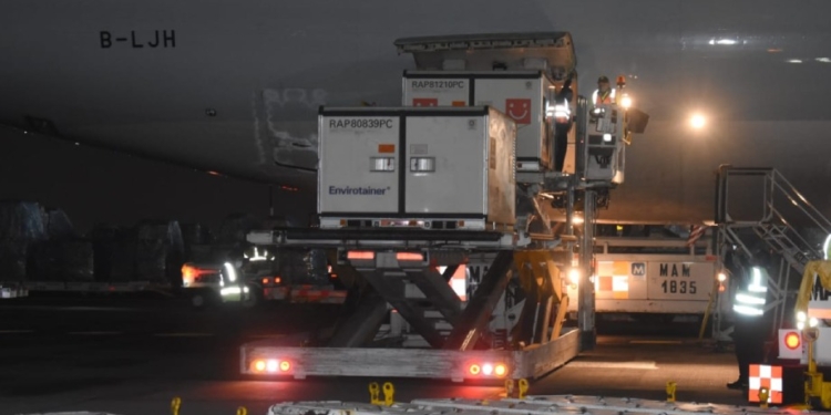 Ciudad de México-. México recibió el octavo embarque de vacunas envasadas de la farmacéutica Sinovac Life Sciences Co., Ltd. con un millón de dosis contra COVID19 el jueves a las 6:05 horas.