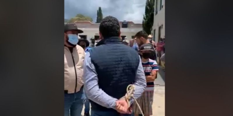 Redacción, Noticias MX Político. – Habitantes del municipio de Huimilpan amarraron de las manos al secretario de Gobierno, el segundo funcionario con mayor rango en aquella demarcación, Juan Alberto Nava Cruz, y lo exhibieron así públicamente, al hacerlo caminar en las calles alrededor del jardín principal de la cabecera municipal.