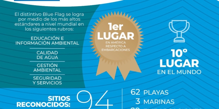 Muy buenas noticias: México se ratifica como primer lugar en América y asciende al top ten mundial en playas, marinas y embarcaciones de turismo sostenible distinguidas por el programa Blue Flag.
