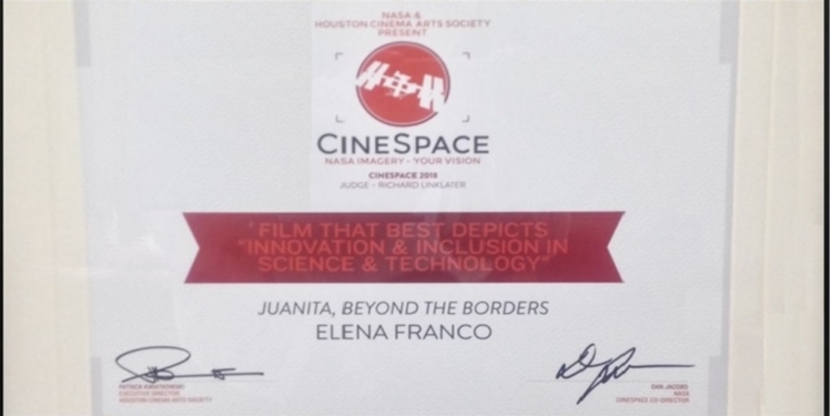 En esta ocasión fue con el cortometraje “Juanita, Más Allá de las Fronteras”, de la cineasta mexicana Elena Franco, quien compitió contra 238 participanrtes de 52 países de todo el mundo.