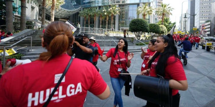 Redacción, Noticias MX Político.- Miles de empleados de hoteles del sur de California dejaron de trabajar el domingo, exigiendo mejores sueldos y prestaciones en lo que el sindicato describe como la mayor huelga de su historia.
