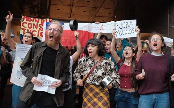Mon Laferte (@monlaferte ) manifestándose en la embajada de Chile en México.