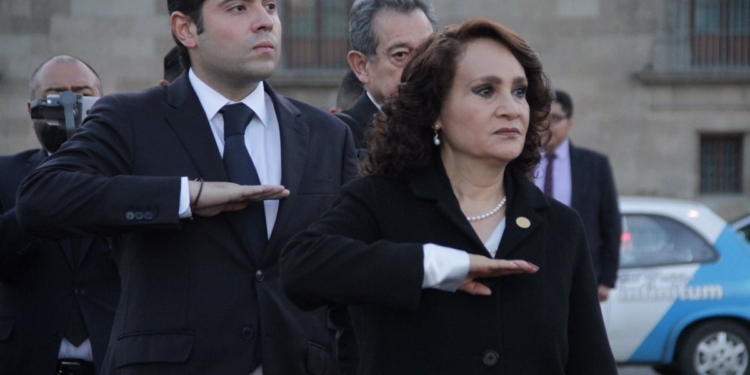Posteriormente, la Banda de Guerra del Ejército mexicano interpretó el Toque de Silencio y el Himno Nacional.