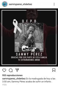 Asimismo, en la publicación, explicaron que Sammy Pérez deja un gran vacío en el corazón de todos sus seres queridos y fans.