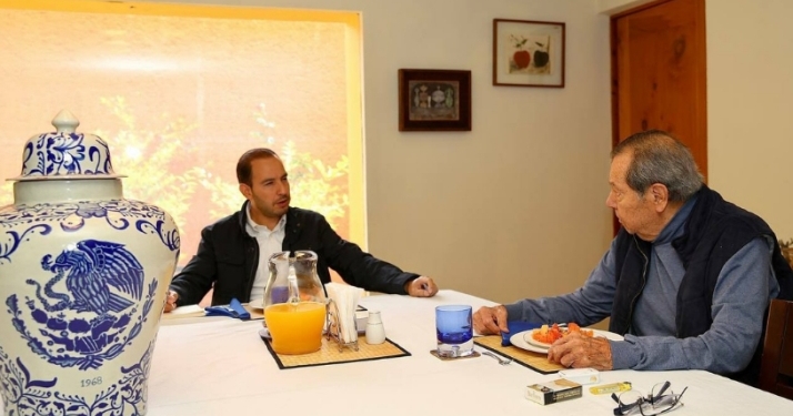 Ahora, recibió en su casa de Las Lomas de Chapultepec al presidente del PAN, Marko Cortés, quien escribió un tuit de tres líneas para agradecerle al guanajuatense: