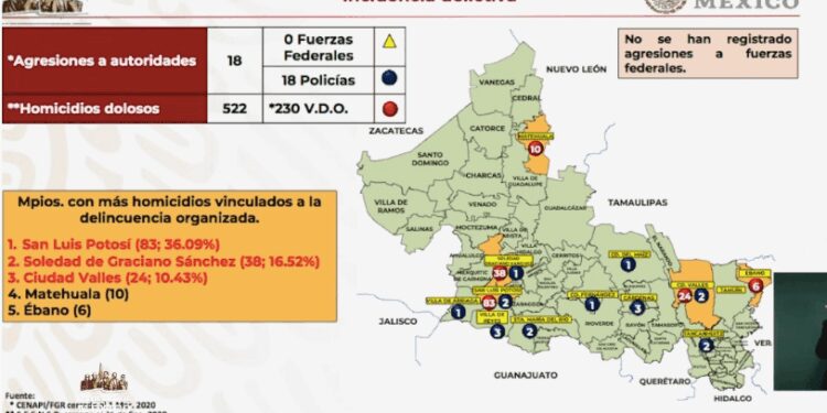 Ojeda agregó que de los 58 municipios de San Luis Potosí, en 53 de ellos hay baja densidad poblacional y escasa presencia fuerza policial. Dijo que en la entidad solo hay un grupo delictivo local, conocido como “Los Talibanes“.