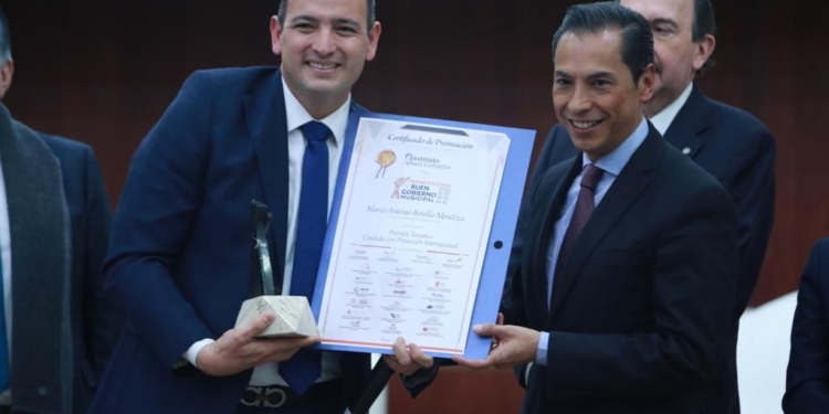 El alcalde, Marco Bonilla Mendoza, asistió a la ceremonia del “Premio Nacional al Buen Gobierno Municipal” en su edición 2022, mismo que se realiza en la Ciudad de México, donde se le entregó el galardón “Ciudades con Proyección Internacional” al municipio de Chihuahua gracias a la evaluación del Programa de Gasto Público y Rendición de Cuentas (PEFA Check) que se obtuvo en 2022, por ser una acción innovadora y emblemática.