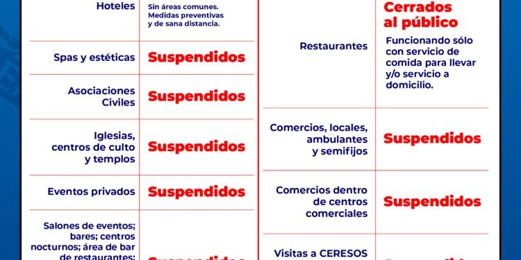 Ante el rebrote de contagios, en el estado habrá Ley Seca de jueves a domingo por lo que no se podrá vender ni servir bebidas alcohólicas en establecimientos, tiendas o restaurantes. Mientras que de lunes a miércoles se restablecerá la venta con una restricción de horario hasta las 18:00 horas.