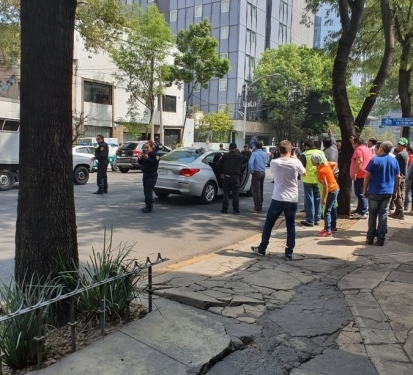 Posible ataque a una persona a bordo de un vehículo, que se resistió a ser asaltado; los hechos a escasos metros de Torre Diana, generaron caos y desinformación en empleados y visitantes al inmueble.