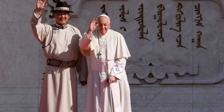 Redacción MX Político.- El papa Francisco deseó este sábado que puedan pasar «las nubes oscuras de la guerra» gracias «al encuentro y al diálogo», en el primer discurso de su viaje a Mongolia y en el que puso como el ejemplo el periodo conocido como «pax mongola», la ausencia de conflictos entre los pueblos que fueron conquistados por el Imperio mongol durante los siglos XIII y XIV.