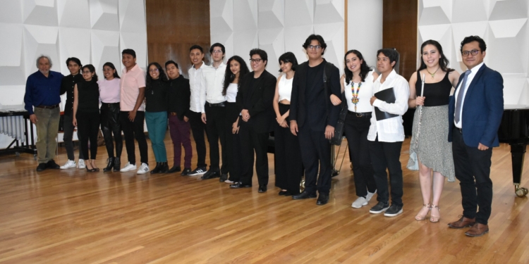 Los primeros en participar fueron la flautista Naya Larissa López Chávez y el percusionista Aarón Alí Rivera Domínguez, de la cátedra de la maestra Mónica López Lau, quienes interpretaron una obra anónima del siglo XIV y la pieza Tierkries, de Karlheinz Stockhausen (1928-2007), compositor alemán, pionero en el campo de la improvisación electrónica.