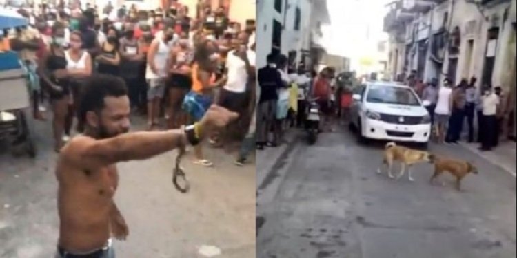 De acuerdo con CUBANET, en unas de las imágenes publicadas en redes sociales este domingo se escucha a los artistas de San Isidro gritar consignas contra Miguel Díaz-Canel y el pueblo seguirlos.