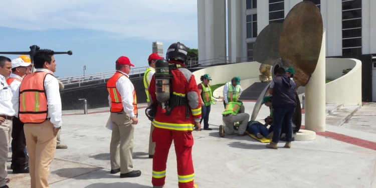 Adicionalmente, personal de Contraincendio y rescate del CAP llevó a cabo un simulacro de salvamento de tres “lesionados”, quienes fueron llevados a la Unidad Médica del ese Centro Administrativo.