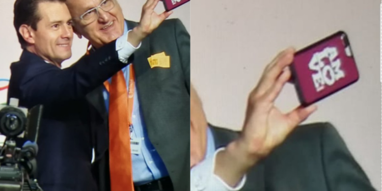 Todo muy normal con una inocente foto grupal, sólo un detalle: el celular con el que se tomó la fotografía tenía una carcasa con la leyenda “AMLOVE”. De acuerdo con el diario Reforma, Yeidkol Polevnsky, presidenta de Morena, fue quien le ofreció el aparato al presidente. Según el medio, tras darse cuenta, Peña Nieto solo rió.