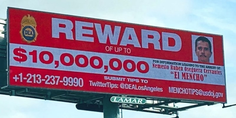 Información que se desprende de la edición de este 11 de marzo en El Universal, detalla que en agosto de 2018, la entonces Procuraduría General de la República (PGR) elevó de 2 a 30 millones de pesos la recompensa para quien o quienes aporten información valiosa que lleve a la captura de Oseguera Cervantes, “El Mencho”.