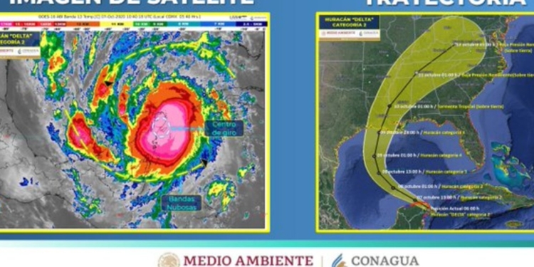 Debido al paso del #Huracán #Delta Categoría 2 por el oriente de nuestro Estado, el Sistema Nacional de #ProtecciónCivil mantiene una Alerta Roja para el noreste, centro y norte de #Yucatán; (1/2) pic.twitter.com/LZve65mUyZ— Protección Civil Yucatán (@procivy) October 7, 2020