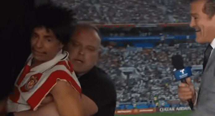 Eugenio aceptó el reto de interrumpir una trasmisión en vivo si es que su hijo aceptaba estar con unos aficionados y bajarse los pantalones. Tras el incidente, Eugenio corrió al baño para quitarse la caracterización y, ahora sí, disfrutar del partido México-Alemania.