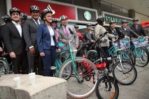 CIUDAD DE MÉXICO, 22 de septiembre de 2016 (AlMomentoMx) .- Con motivo del Día Mundial sin Auto, los legisladores priistas salieron en bicicleta de la Glorieta a Colón, en Paseo de la Reforma, hacia San Lázaro.