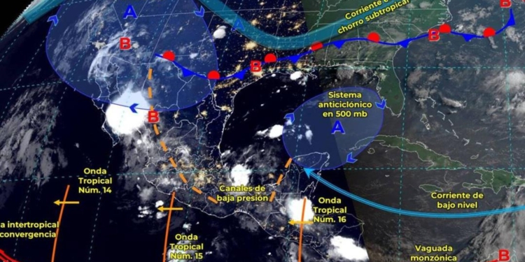 El frente frío 27 se extenderá sobre el oriente y sureste del territorio mexicano, interactuando con un canal de baja presión y la corriente en chorro subtropical, lo que provocará lluvias muy fuertes en varias regiones del país.