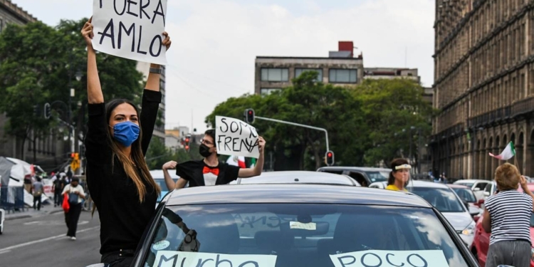En Ciudad de México los protestantes han usado la avenida Paseo de la Reforma para manifestarse a través de claxonazos y de cartulinas en las que se lee: “Fuera AMLO”, “AMLO vete ya”, “Amlo comunista”, “Socialista es Amlo” y “No al comunismo”.