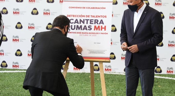 CIUDAD DE MÉXICO.— Víctor Hugo Romo, alcalde de Miguel Hidalgo, firmó un convenio de colaboración con el club Pumas UNAM, para dar inicio al equipo Cantera Pumas CDMX-MH.