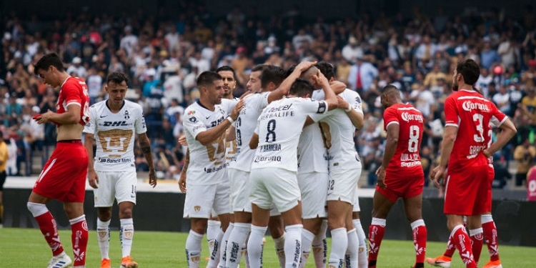 Los universitarios se encaminaron al triunfo en esta jornada 16 con los goles del chileno Felipe Mora, al minuto 39, y del argentino Víctor Malcorra, de penal al 53, pero Toluca, que estaba urgido del triunfo, pudo empatar con los tantos de los argentinos Federico Mancuello, al 57, y Alexis Canelo, de penal al 61.