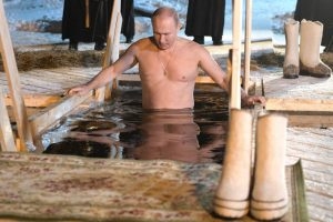 Las televisoras rusas mostraron a Putin, de 65 años, acercándose a un agujero abierto en el hielo que cubría el lago Seliger, en el noroeste del país, para a continuación sumergirse y persignarse.