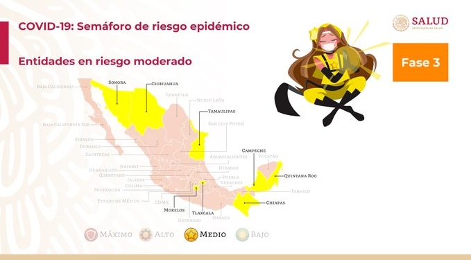 Es decir, si vives en un estado que está en semáforo rojo visites mejor uno que esté en naranja o amarillo. Pero si vives en una zona que está en naranja o amarillo no vayas a estados que aún están en rojo.