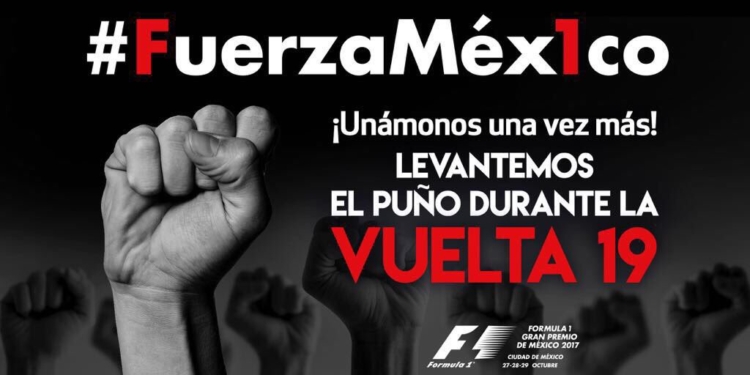 La máxima categoría del deporte motor invitó al público a levantar el puño en la vuelta número 19 de la competencia del Gran Premio de México 2017, realizado este domingo en el Autódromo Hermanos Rodríguez.