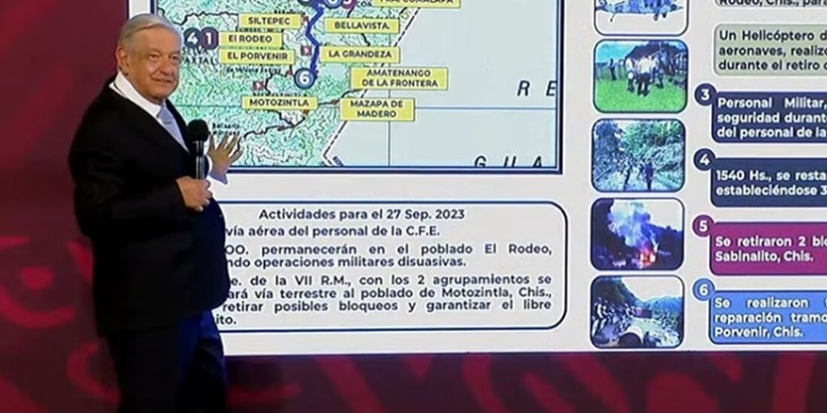 Redacción MX Político.- El presidente Andrés Manuel López Obrador afirmó que ya se restableció el servicio de energía eléctrica en los municipios afectados cercanos a Frontera Comalapa, en Chiapas, tras los bloqueos carreteros y el desfile criminal.