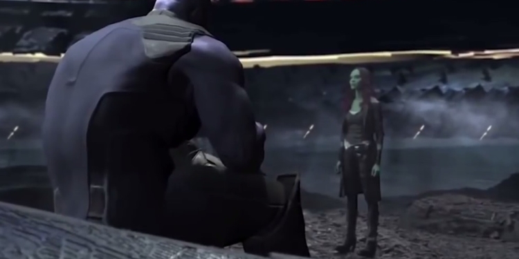 En la escena, Thanos usa la gema de la realidad para recordar un momento del pasado de ambos, donde Gamora aún conquistaba planetas en su nombre. Esto impulsa una discusión entre ambos, donde el Titán Loco dice: