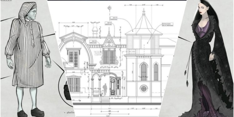 También ha compartido información sobre el diseño de vestuario de la película, bromeando con bocetos de lo que Lily y Herman Munster llevan a la cama.