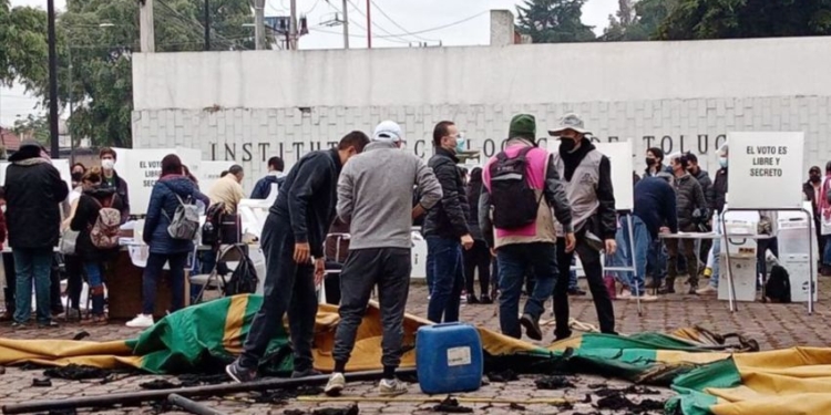 Durante la jornada electoral de ayer, un grupo de hombres llegó de manera violenta a la casilla 2491 instalada en la Unidad Habitacional Lázaro Cárdenas de Metepec, para robarse las boletas electorales y destruir el centro de votación.