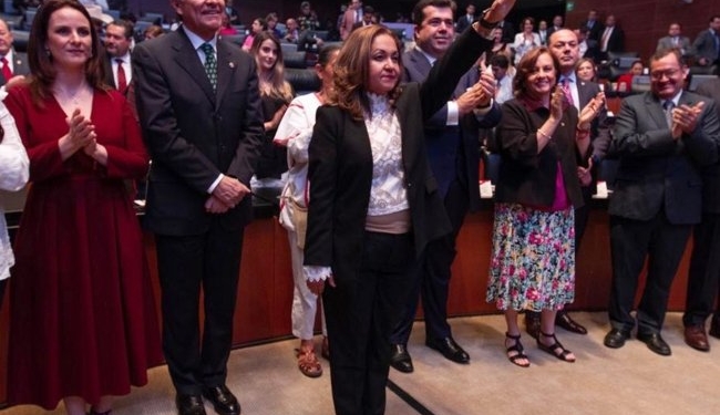 Luego de que el pleno senatorial avaló con 113 votos a favor, una abstención y cero en contra, la periodista ingresó al Salón de Sesiones acompañada por una comisión de senadores y rindió protesta.
