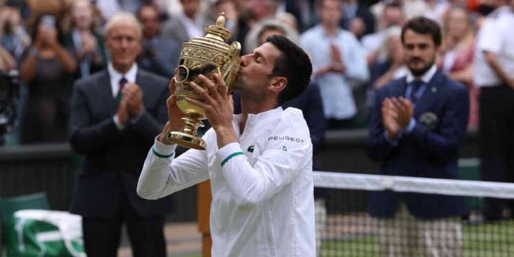 Wimbledon, Inglaterra.- ¡Majestuoso! El número uno del ranking mundial del FedEx ATP, Novak Djokovic se enfrentó al profesional italiano Matteo Berrettini en un final emotivo del Campeonato de Wimbledon, donde ambos demostraron un gran ímpetu tanto en sus lanzamientos como en sus saques, puesto que, durante en el primer set, vimos a un Djokovic tranquilo al obtener la mayoría de puntos en los primeros minutos de haber comenzado el partido, mientras que Berrettini se mostró ausente y sin pensar en los golpes a devolver del serbio.